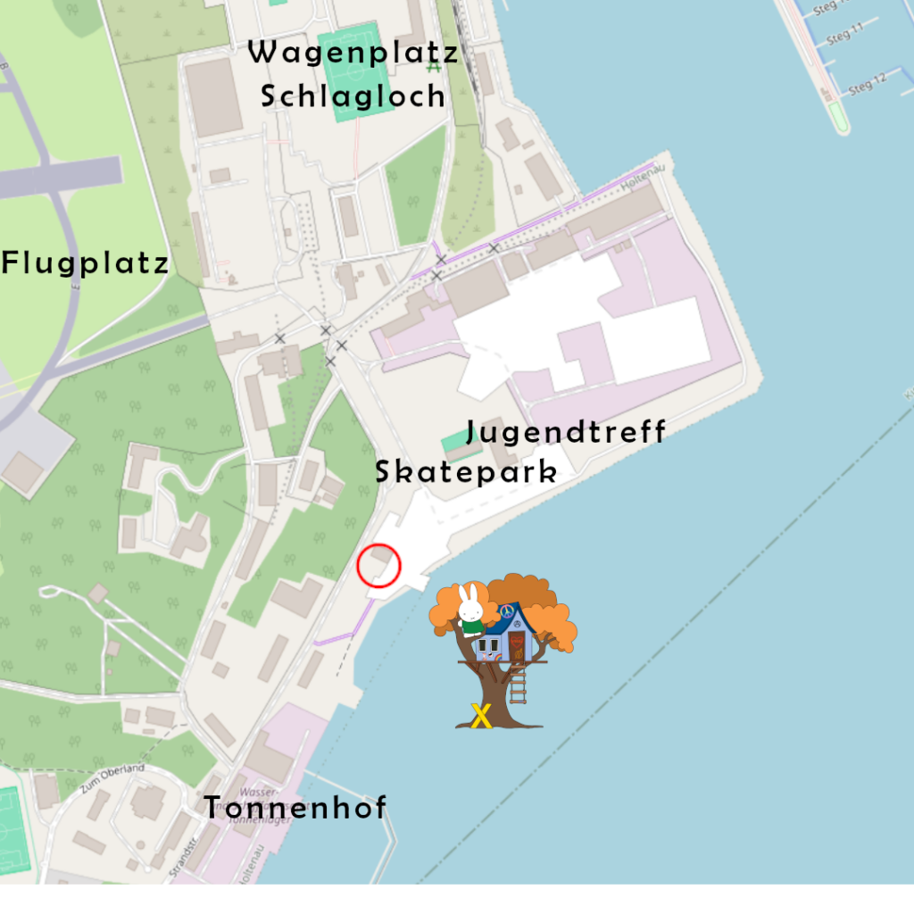Das Baumhaus befindet sich auf dem MFG 5-Gelände in Holtenau Ost.